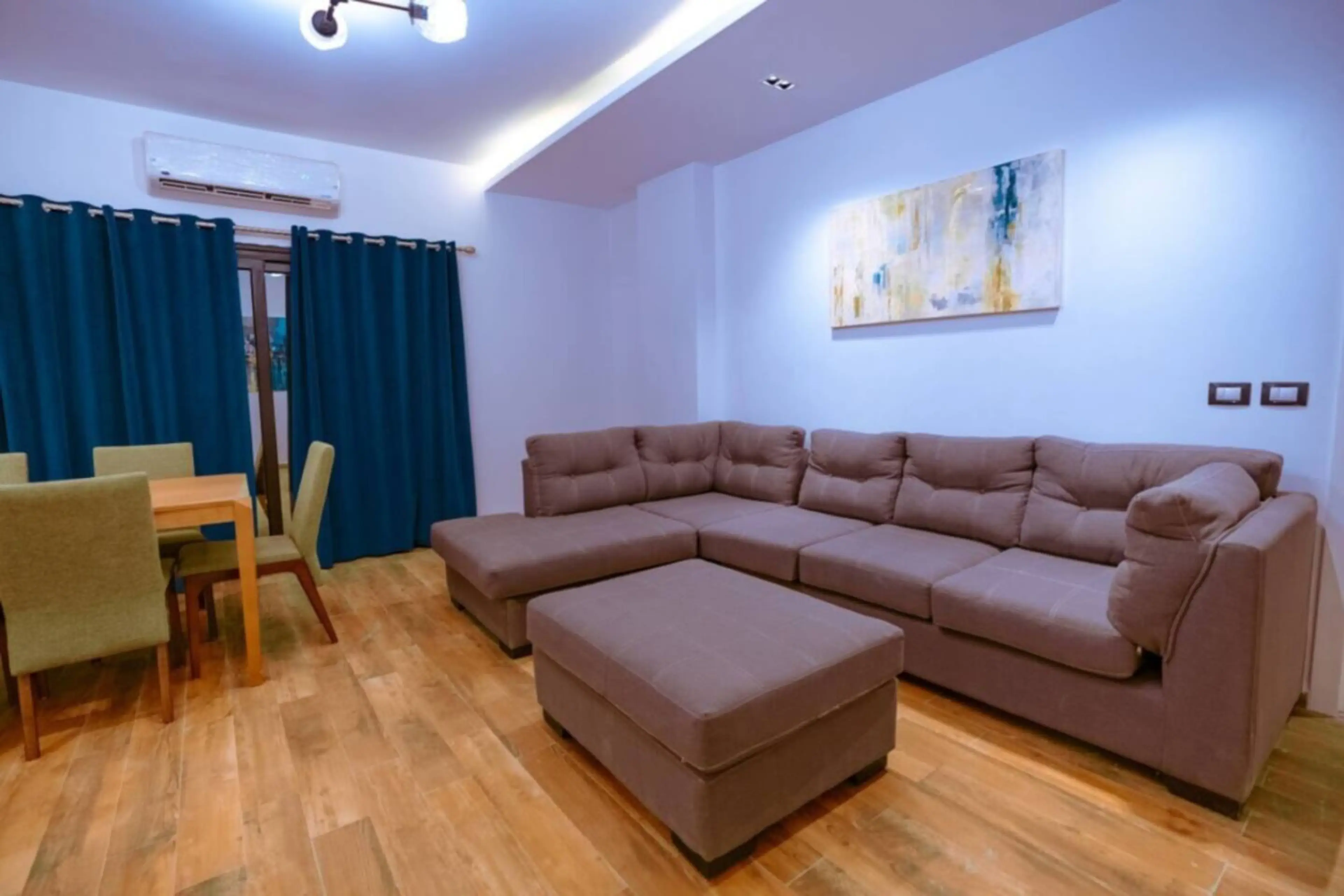 Welcome to the Standard One-Bedroom Apartment at Travelholic Residence, New Cairo! This 70 sqm apartment offers comfort and functionality with a spacious living room, a dining table, Balcony, and an L-shaped sofa that converts into an additional bed. The apartment includes LED TV and high-speed inte...