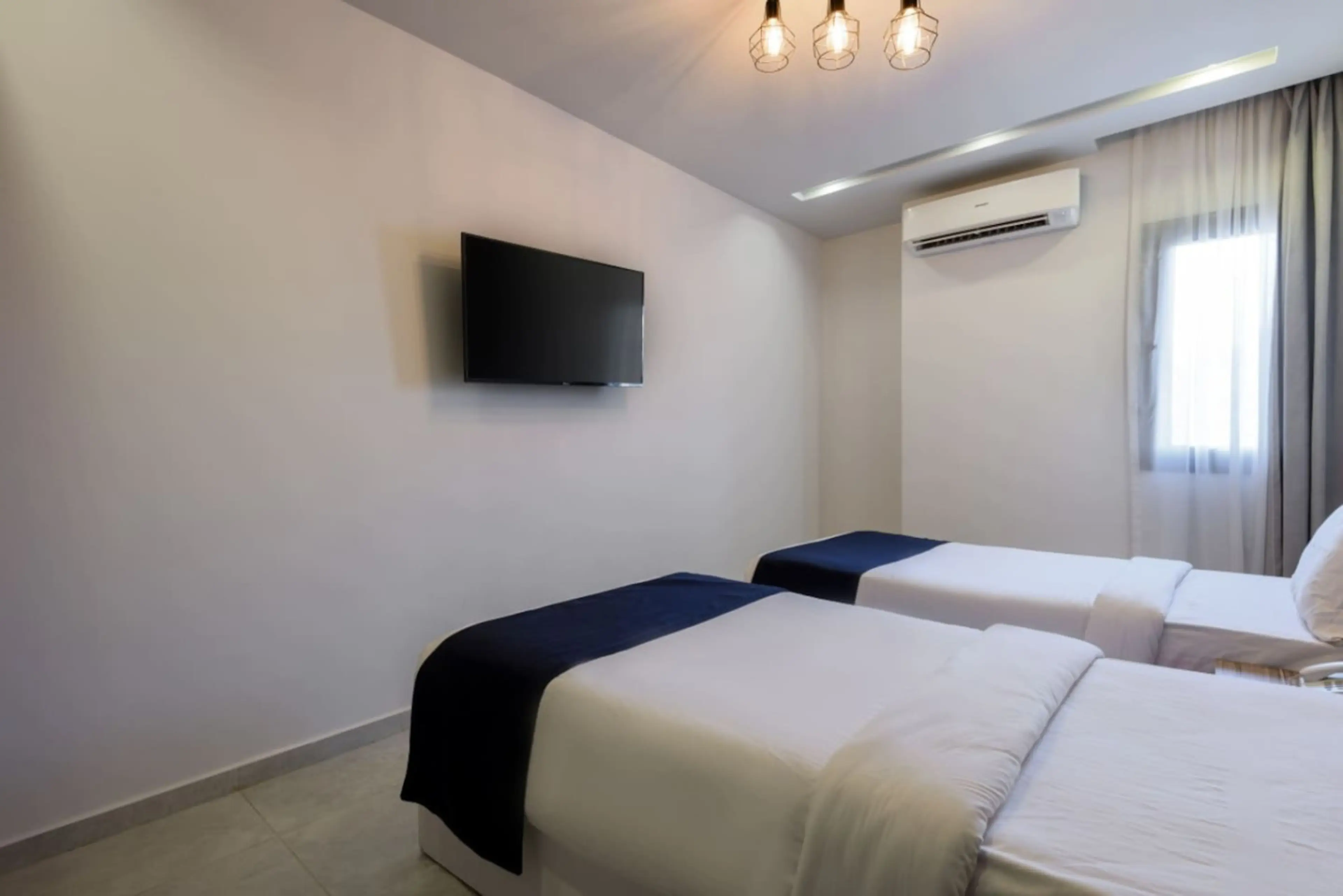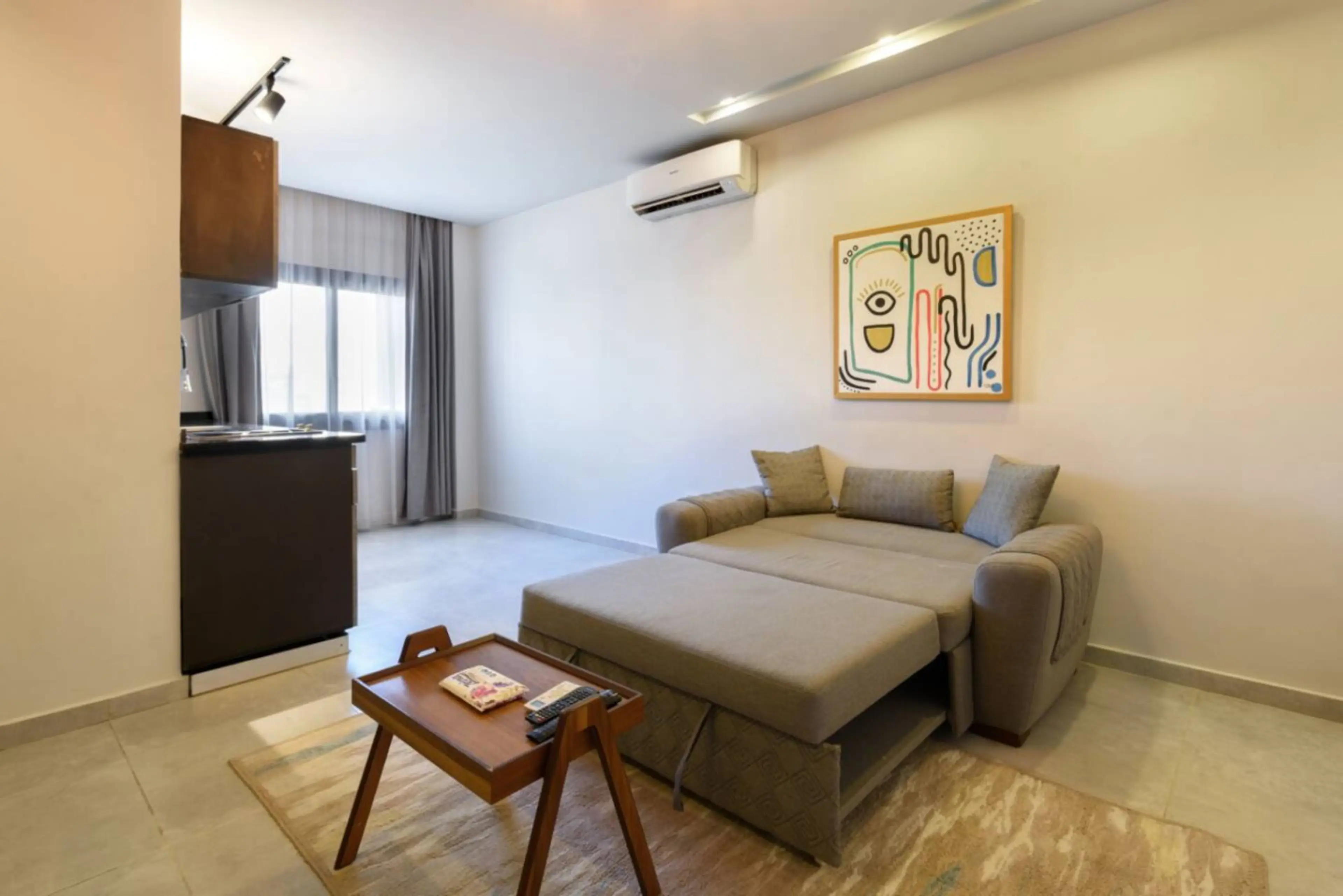Welcome to Twin 1BR Apt by Travelholic, Golden Gates Compound, New Cairo! This 60 sqm apartment features 2 single beds, a sofa bed, and a fully equipped kitchen. Enjoy garden views, complimentary WiFi, and a Smart TV with free subscriptions to Netflix, WatchIt, and Shahid. Ideal for up to 3 guests, ...