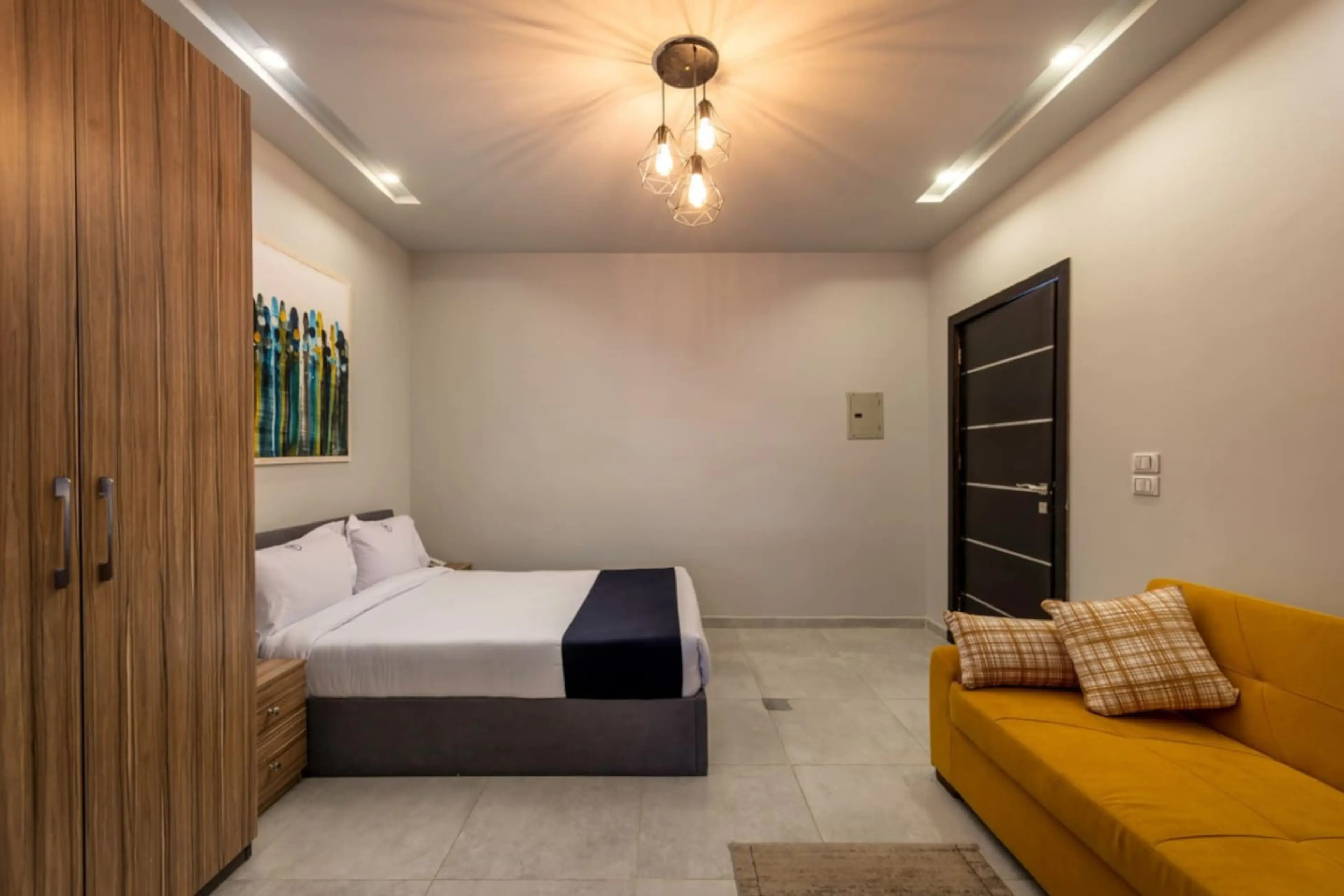 Welcome to Queen Superior Studio,Golden Gates compound, Mokattam! This 35 sqm studio offers a queen bed, sofa bed, and modern amenities for up to 3 guests. It provides a peaceful retreat with easy access to key Cairo attractions. Enjoy high-speed WiFi, a Smart TV with free subscriptions to Netflix, ...