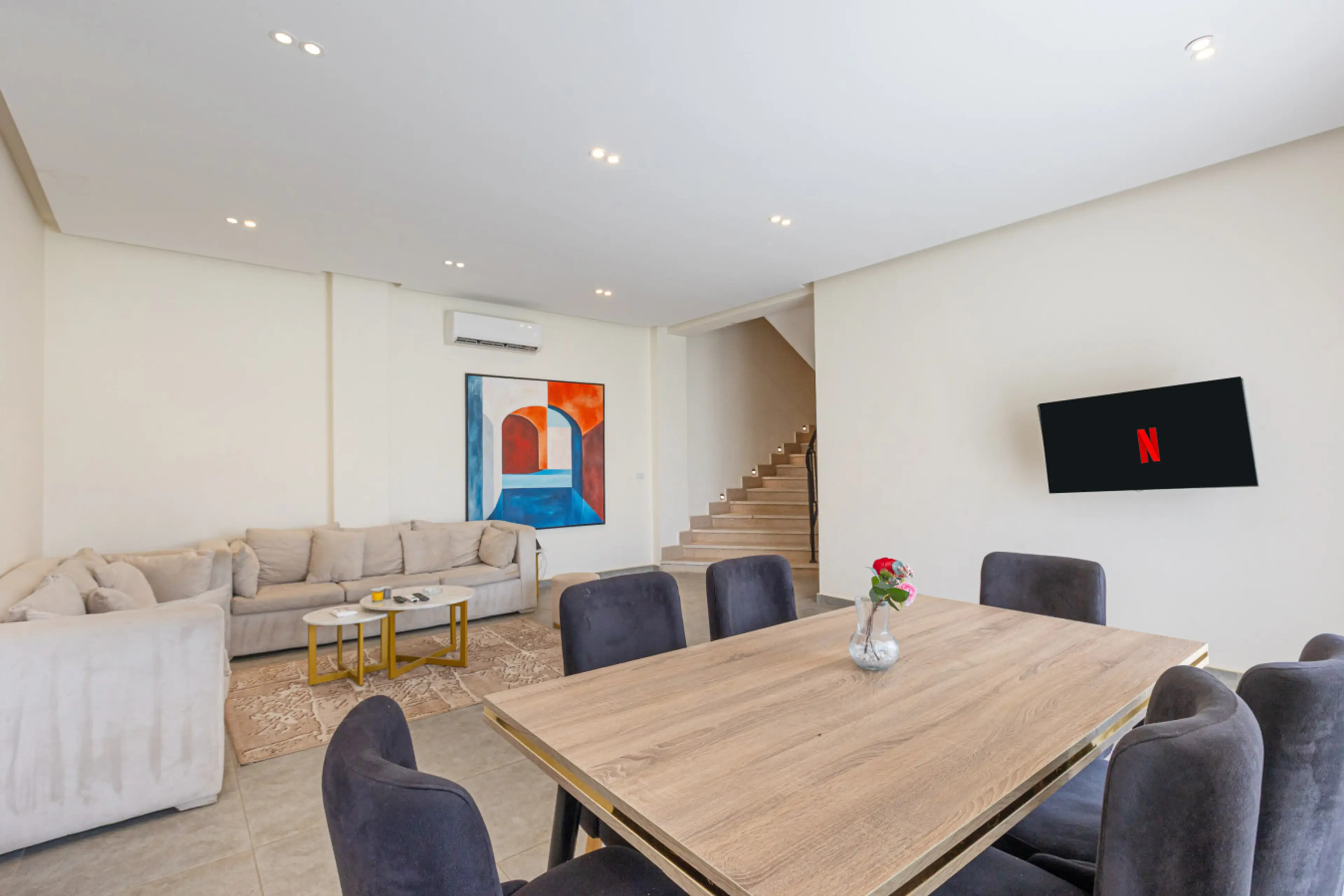 Welcome to 4BR Golden Pool Villa in GoldenGates Compound,Mokattam! This luxurious retreat accommodates up to 8 guests with 4 bedrooms (3 king beds, 2 single beds) and 4 bathrooms. Enjoy a private swimming pool, 130 sqm garden, and a rooftop balcony with serene views. The villa features a stylish liv...